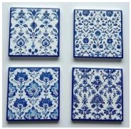 Blue Tiles coasters set/4 ceramic square