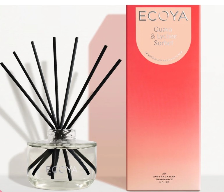 Housed in a beautiful contemporary glass jar and sealed with a silver collar, the diffuser is designed to fill small to medium spaces with a long-lasting fragrance. Presented in a beautiful box, it is ideal for gifting occasions and offers fragrance for up to six months.Ecoya Guava & Lychee Diffuser 200ml. Great gift idea !