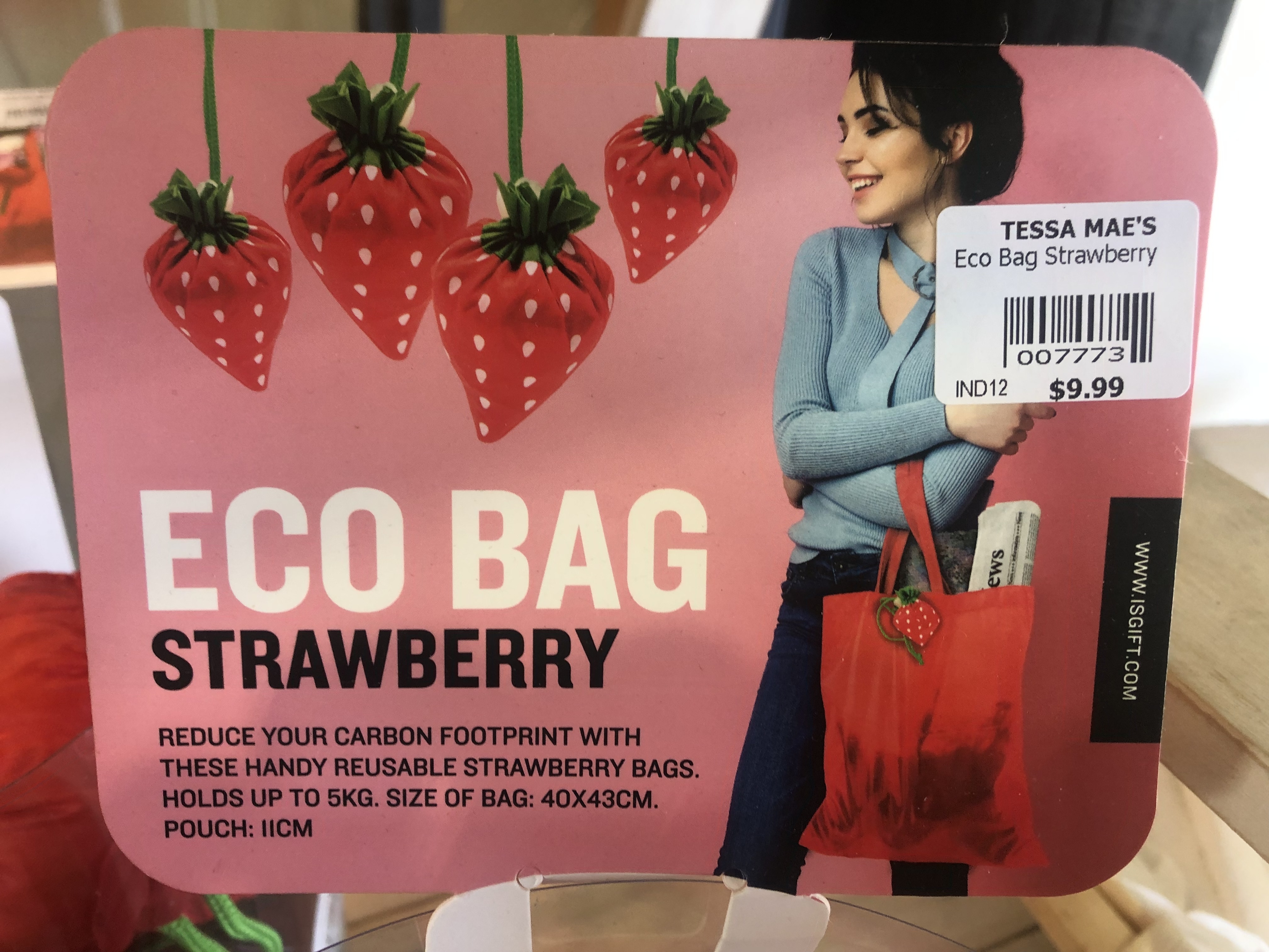 Cute Strawberry shaped foldaway shopping bag, perfect to pop in your handbag for those impromptu purchases.