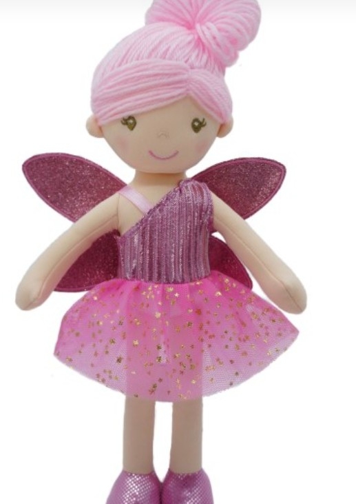Adeline Fairy. Sparkly Fairy Ragdoll in Pink 30cmH.