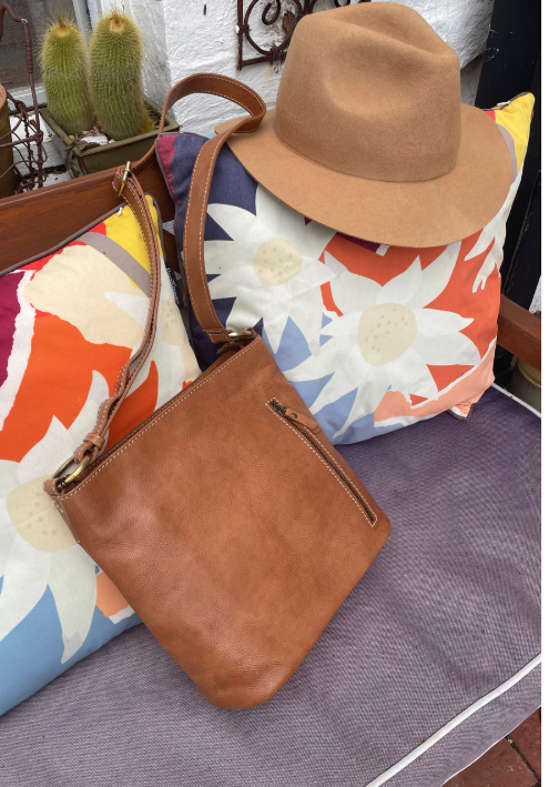 Signature shoulder bag - Chunky brass hardware Twin top sections Zip and magnetic closure Zips outside front & backAttractive heavy contrast stitch detail.