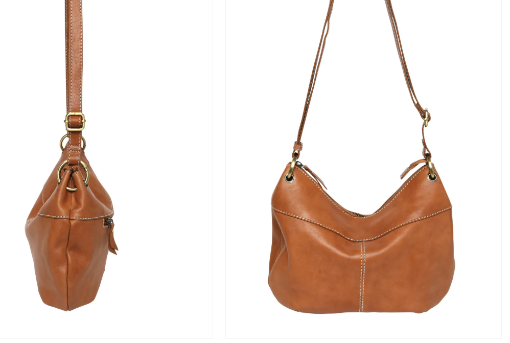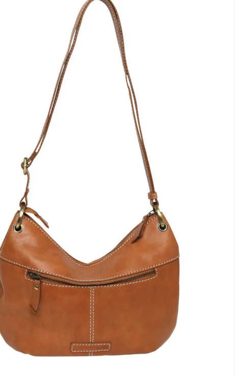 Saddle cross body bag, top zip, back outside zip, attractive heavy contrast stitch.