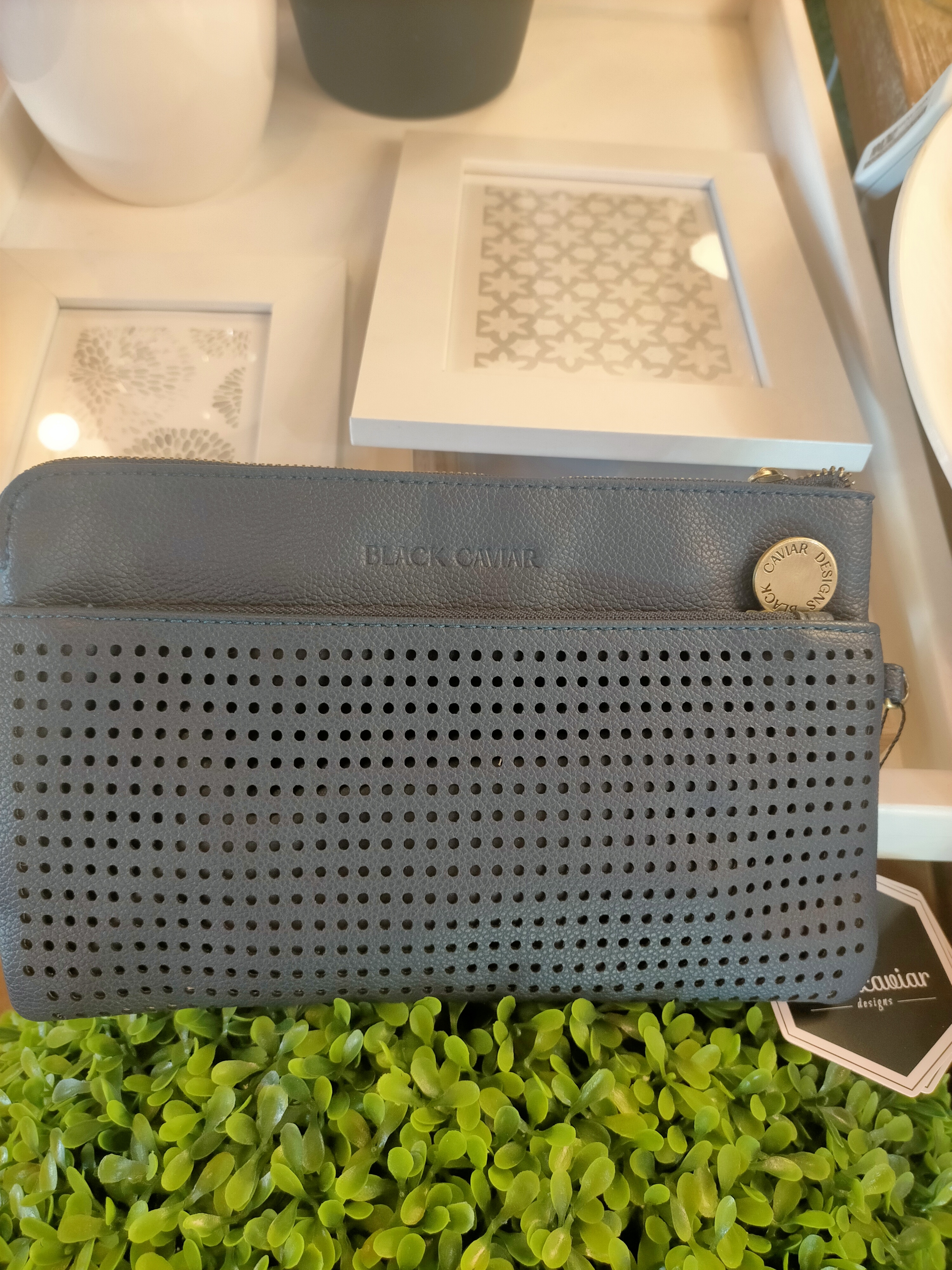Ladies cross body bag and clutch bag in NavyA timeless coin purse with beautiful brushed gold hardware for a touch of luxe!