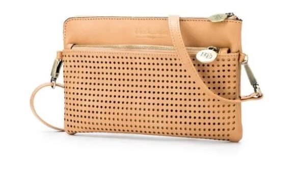 Fits large smart phonesInternal zip pocket.Adjustable cross body strap included.Zip closure.Front pocket with zipDimensions: L x 25, H x 12, W x 1 cmMaterial: Premium Polyurethane PUHardware: Brushed gold